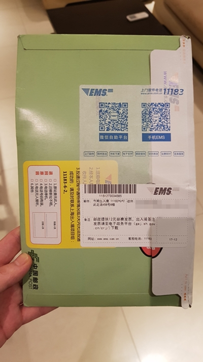 연장 비용 160위안과 EMS 배송비용 12위안 해서 총 172위안이 들었다.